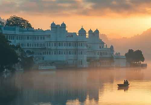Romantic lakeside heritage stay with stunning sunset views and royal interiors.