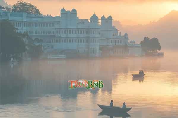 Romantic lakeside heritage stay with stunning sunset views and royal interiors.
